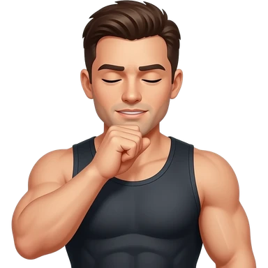 A muscular man taking a deep breath with his eyes closed and a slight smile emoji