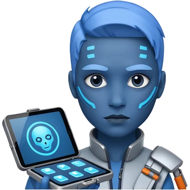 person with digital toolkit, digital vibes, blue emoji | AI Emoji Generator