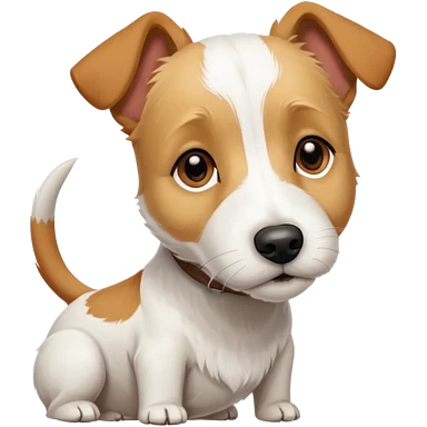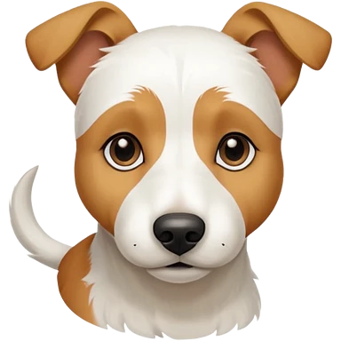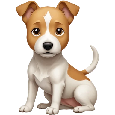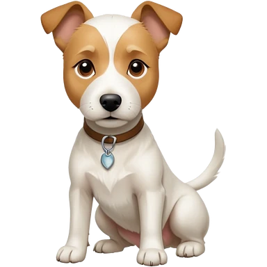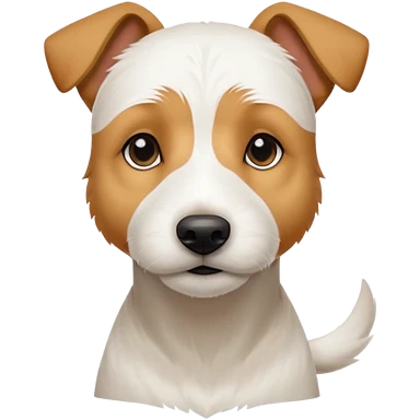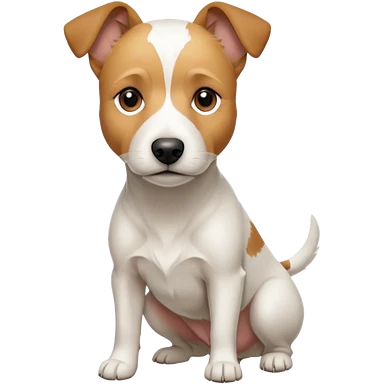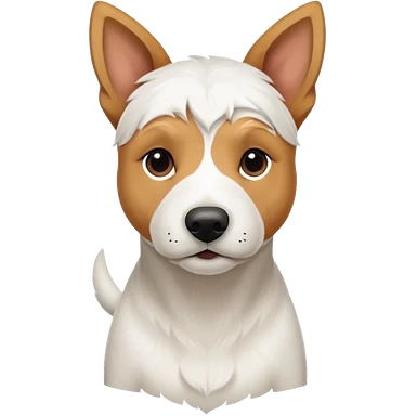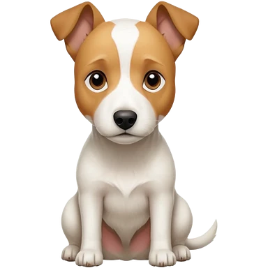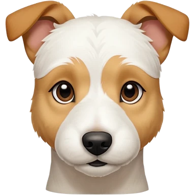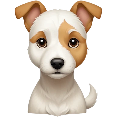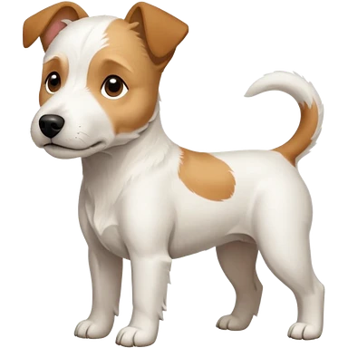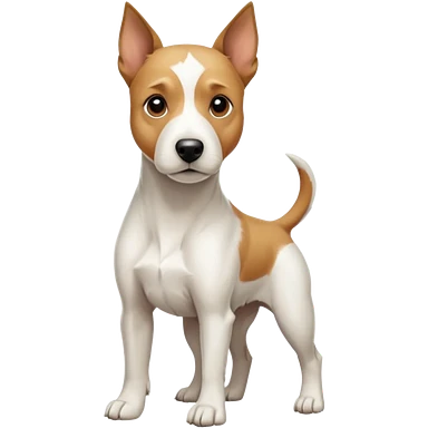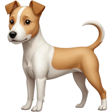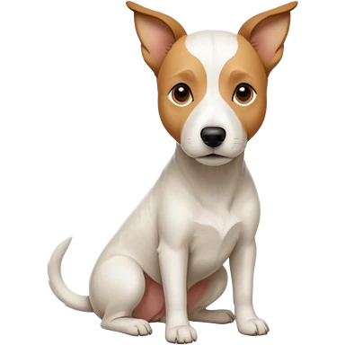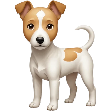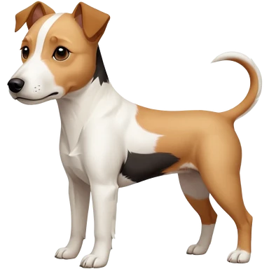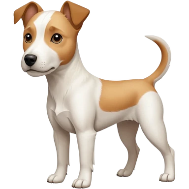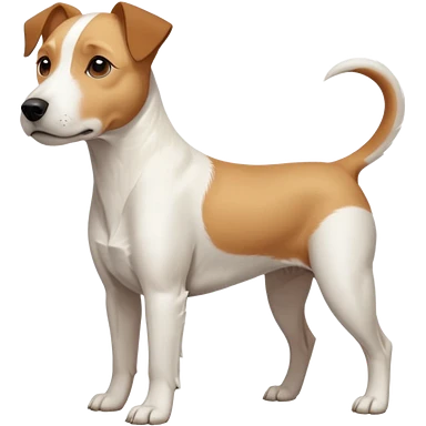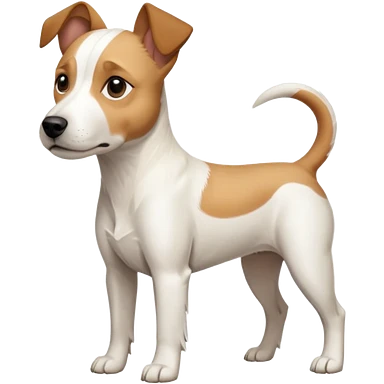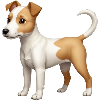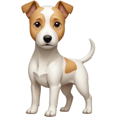 a full body facing front on of a buff white parson russell terrier looking dog the size of a kelpie with light brown long ears resting on its face and a light brown patch on one eye and a large snout. the rest of the dog is completely white. emoji