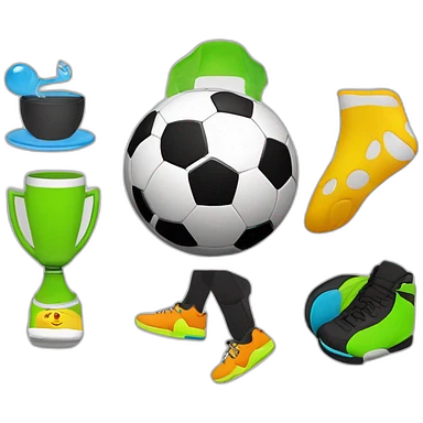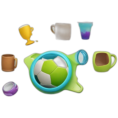 make a circle logo with all shapes of a Soccer ball, person running, wakeboard, Weird emoji, and swig cup emoji