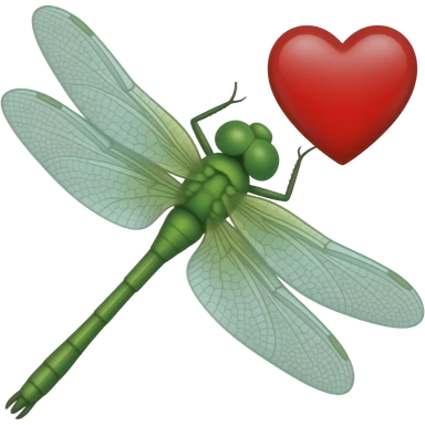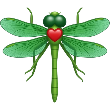 Quiero una libélula verde con un corazón rojo emoji