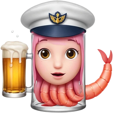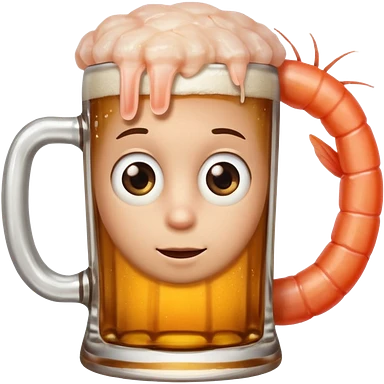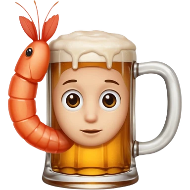 Genérame un camarón con tu tarro en mano de cerveza moderna, asomándose or un costado con cara de curiosidad emoji