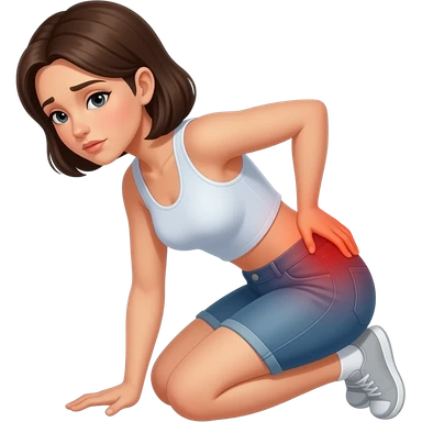una mujer tocandose la espalda y agachandose, sintiendo dolor emoji