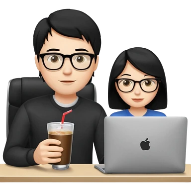 hombre sentado en una mesa con su ordenador de appel mirando la pantalla emoji