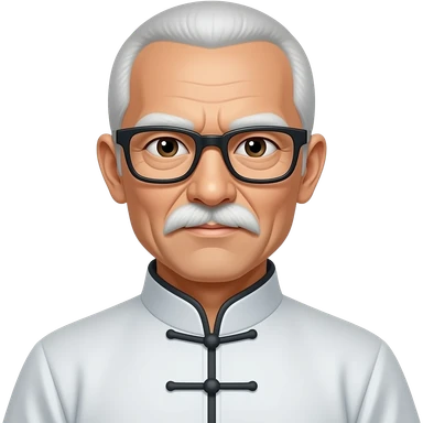Personnage taichi lunette noire moustache blanche pas beaucoup de cheveux visage fin tenue de taichi emoji