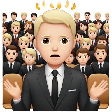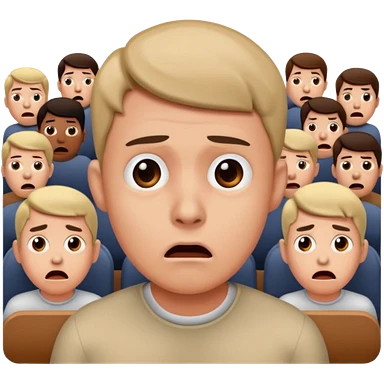 a FRONT PERSON FEELING FEAR, with the audience BEHIND HIM emoji