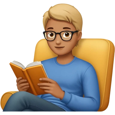 peruse at your leisure, person reading with small glasses in a wingback chair next to a lamp emoji | AI Emoji Generator