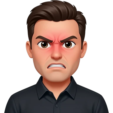pessoa com cara vermelha com camisa preta com raiva emoji