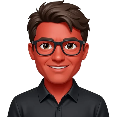 pessoa com cara vermelha com camisa preta emoji