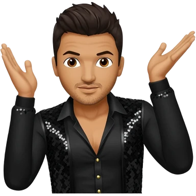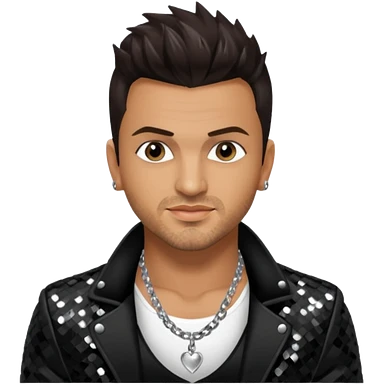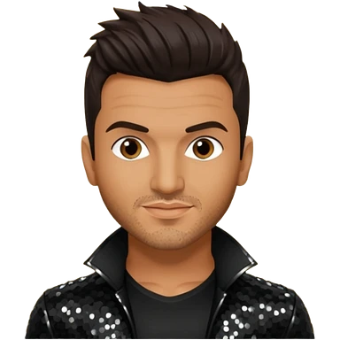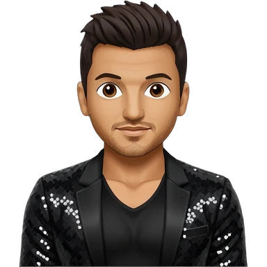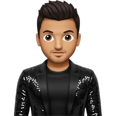 Peter Andre with dark brown hair, black sequin outfit emoji