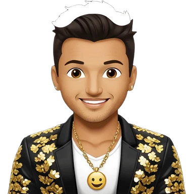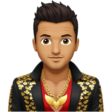Peter Andre with dark brown hair, black sequin jacket, shirtless with necklace emoji