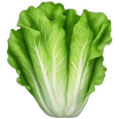 whole lettuce head, broad layered leaves, crisp, curled edges, outer leaves deep green, inner leaves lighter green to pale yellow, leafy and ruffled texture, natural veining, fresh, base stem end visible, 3D, clean, minimal, soft shadows, transparent background, emoji scale emoji