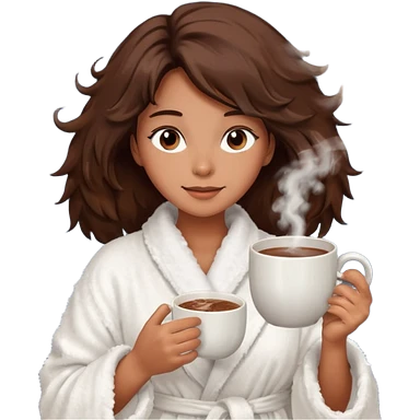 { "type": "human", "look": "fluffy robe woman, messy hair, holding cup of cocoa", "description": "a woman in a fluffy robe with messy hair, holding a cup of cocoa" } emoji