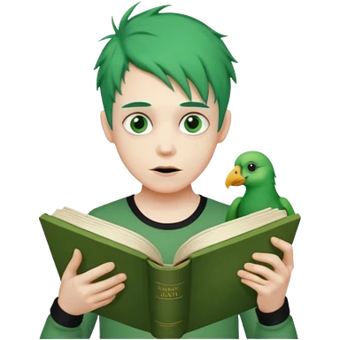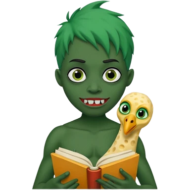 #peter has green hair he is creepy he is on a quest to remove all emojis he has a book with all the words that ever exist in his hand he likes fortnite has a reddit thing and a thong and he has a beak he is black and has a hoad his ayses are more and he is filled with cheese emoji | AI Emoji Generator