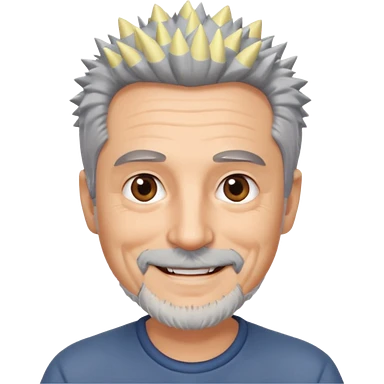 homme 60 ans cheveux gris en l'air petite barbe sourir emoji