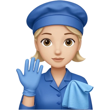 Cleaner + blue gloves + rag, Cafe staff. emoji