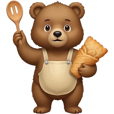 quiero un oso de pie con un delantal de pasteleria y un jorrito de chef que una mano tenga una manga oastlera emoji