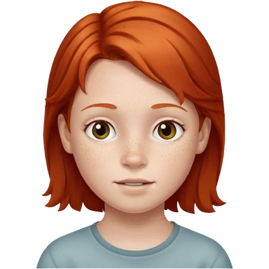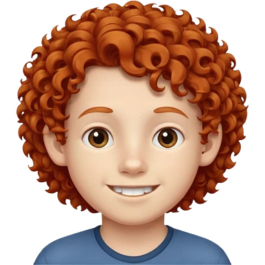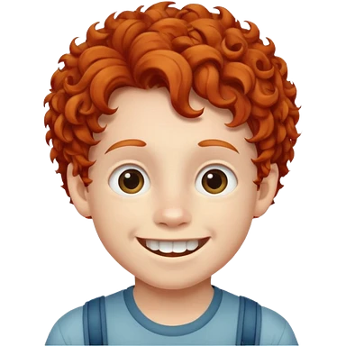 redhead kid with unique face features and very curly hair kid boy happy and braced emoji
