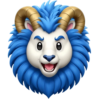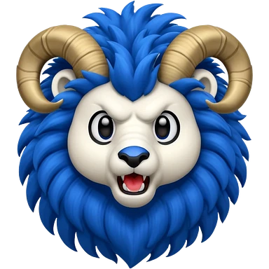 White fluffy maltipoo wearing LA Rams football helmet royal blue emoji
