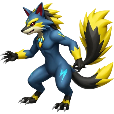 Shiny Anthropomorphic furry Badass cool Zeraora-Zoroark-Obstagoon-fusion emoji