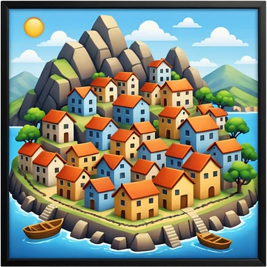 A single sapphire-blue faceted rock head, chunky and worn, with very visible cracks and chipped facets but still shiny, big kind eyes and a confident smile emoji