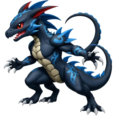 Black and Blue Venom-Stitch-Zekrom-Salandit-Sneasel-fusion, full body, tribal markings emoji