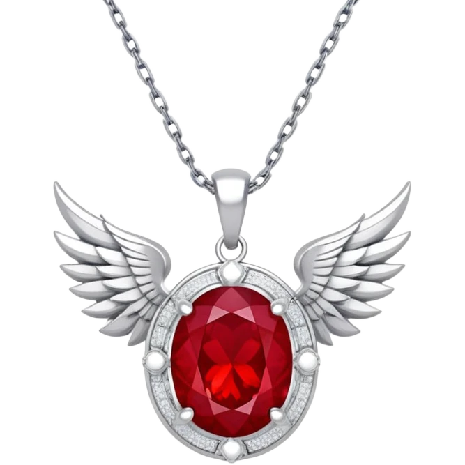 phoenix-inspired ruby pendant, deep red with a pulse of light, silver chain and white stone halo emoji | AI Emoji Generator