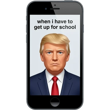 phone that shows a meme of donald trump mugshot and the meme text says "when i have to get up for school" emoji