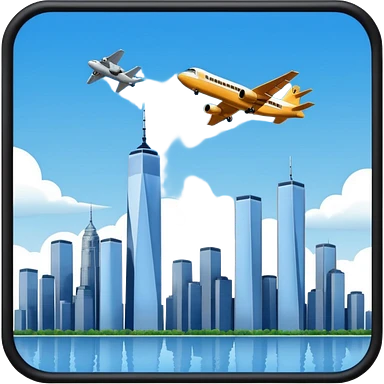 the number 21 on a plane flying near the twin towers emoji