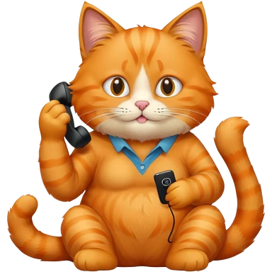 phone,The orange cat is sitting and making a phone call. emoji | AI Emoji Generator