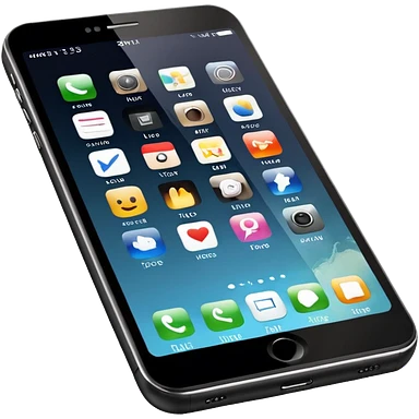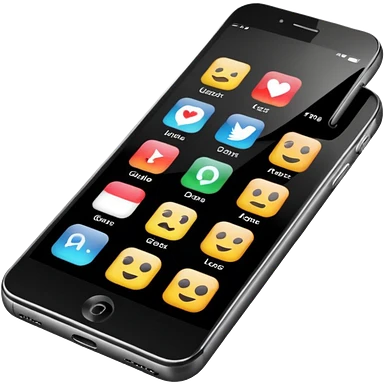 Girl with dark long orange wavy hair, green eyes, and black t-shirt and phone with black app on hand emoji