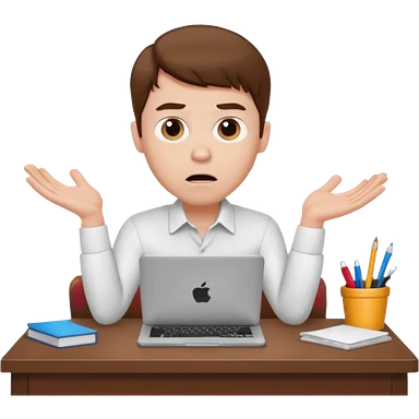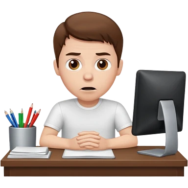 A white man with brown hairs, white skin, sits at his desk in shock emoji