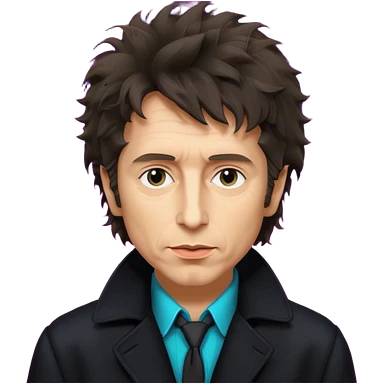 photo real Bob Dylan from 80's - black coat shaggy unshaven untidy emoji | AI Emoji Generator