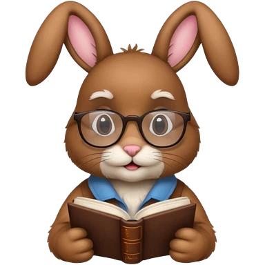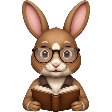 Brown bunny with reading glasses and book. emoji