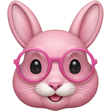 Pink bunny with big circular glasses, smiling, half body emoji