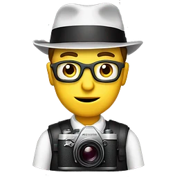 Photographer with a camera, yellow cap, black T-shirt emoji