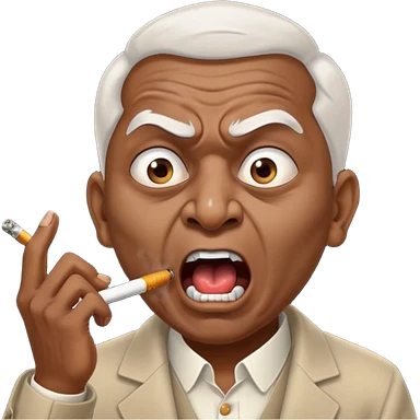 Emoji of Indian Gentleman named Delroy crasto absolutely screaming and foaming at the mouth while smoking through eyes emoji