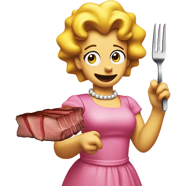 20 year old white Blonde couple eating steak girl with long hair in chef outfit emoji