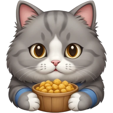 Gray cute cat eating food with cheeks full emoji