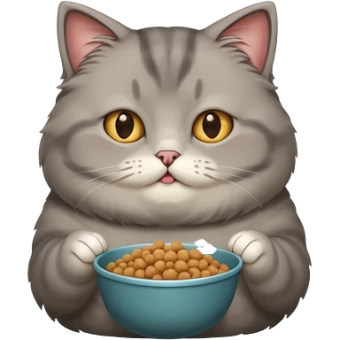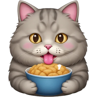 Gray cute cat eating food with cheeks full fat very very fat emoji