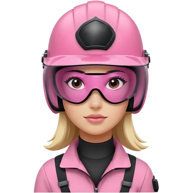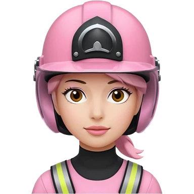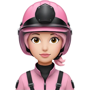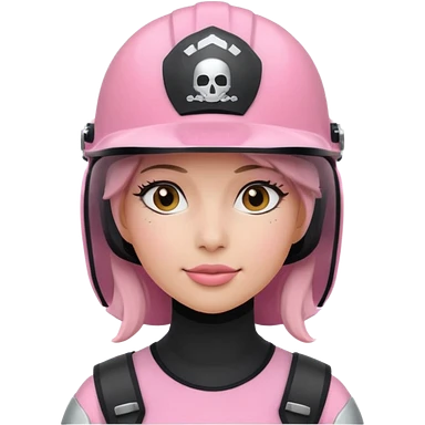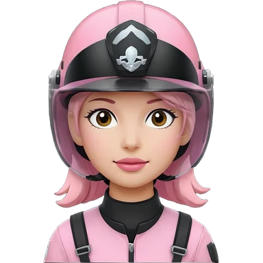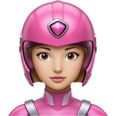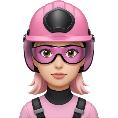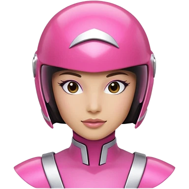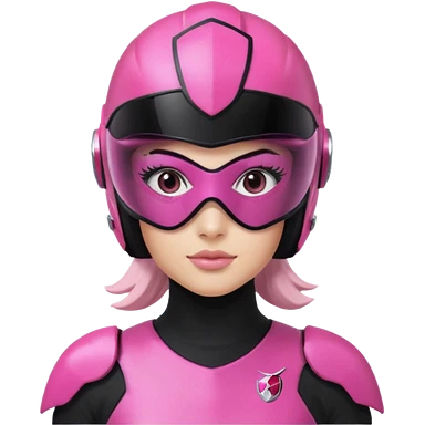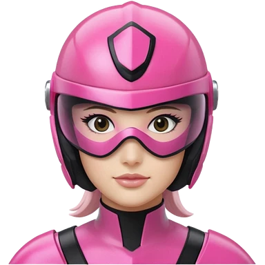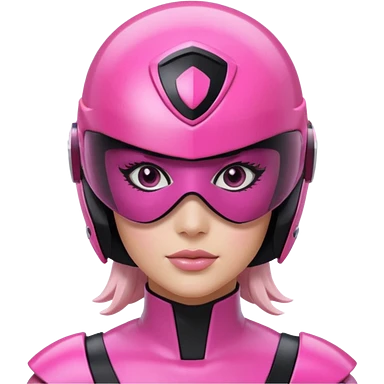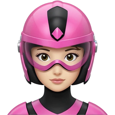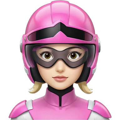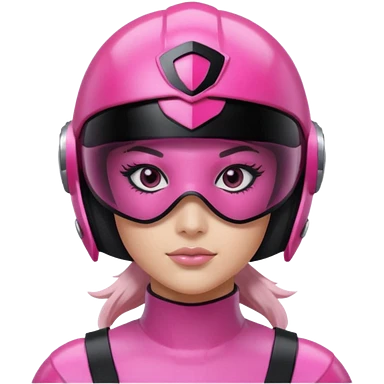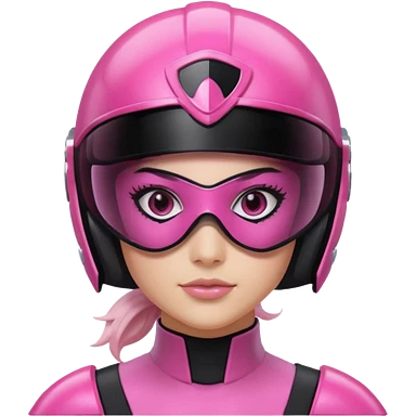 pink power ranger, woman emoji, with helmet on, black visor eye protection, black, power ranger helmet, emoji