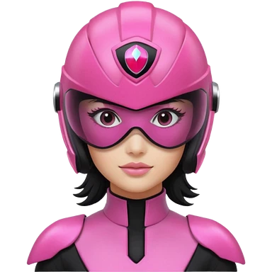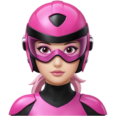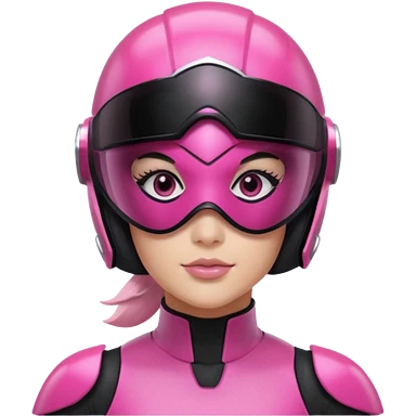 pink power ranger, woman emoji, with helmet on, black visor emoji