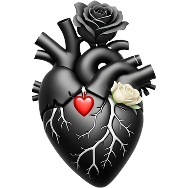 White and sky blue Anatomical heart with light pink rose without leaves emoji