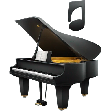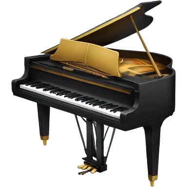 Cinematic Realistic Piano, glossy black grand piano with elegantly curved edges, pristine white and black keys, soft golden light reflecting off its polished surface, faint reflections of a musician’s hands, glowing with refined elegance and musical depth. emoji