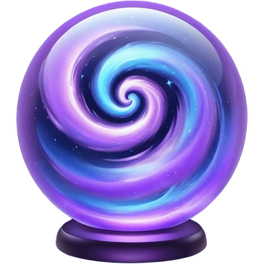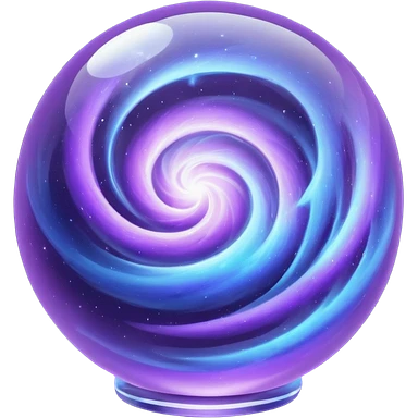 a glass sphere filled with swirling purple and blue dust, glowing, 3d emoji