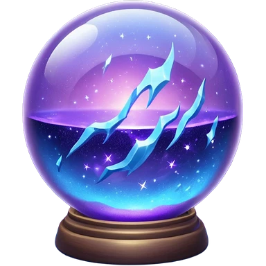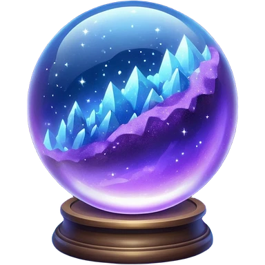 a magical glass sphere filled with flaoted purple and blue dust, glowing, shining 3d emoji