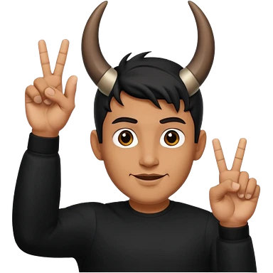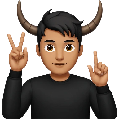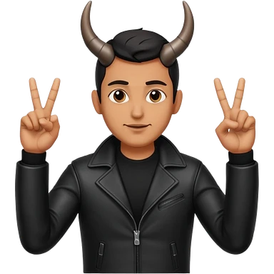 Un uomo vestito in nero che fa il gesto delle corna emoji