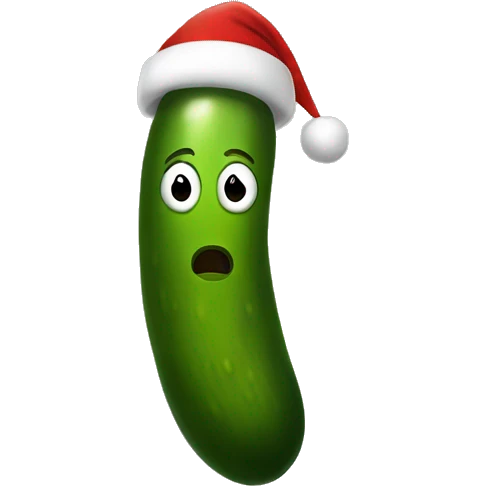 A big Christmas pickle wearing Santa hat emoji