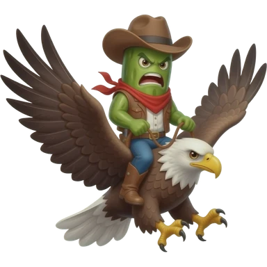 pickle riding an eagle into battle angry pickle. iphone emojis cowboy pickle emoji