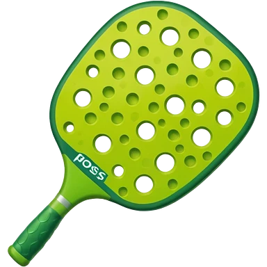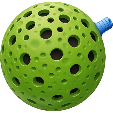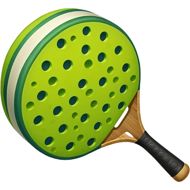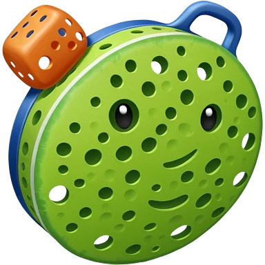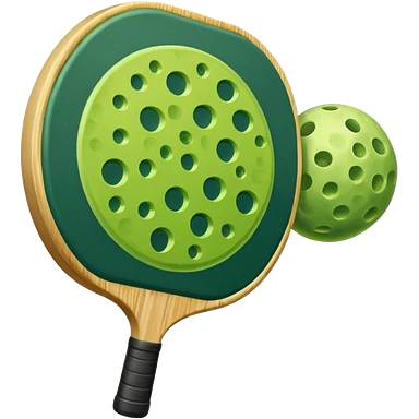 Pickleball paddle in dark grey, with pickleball ball in florescent green at 45 degrees emoji